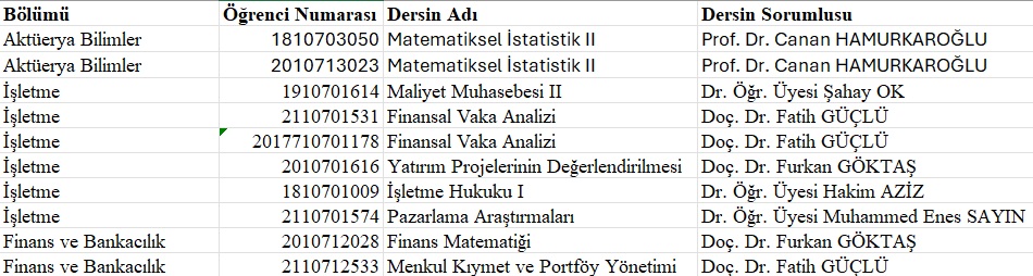 Tek ders sınavı başvuruları onaylanan öğrencilerimiz listesi aşağıda gösterilmektedir.